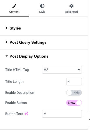 • After inserting the widget, scroll to the Style → Styles panel.