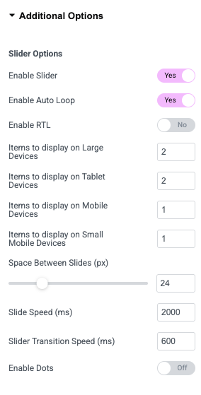 • Adjust the Gap and Direction (left/right alignment) for spacing and layout flow.